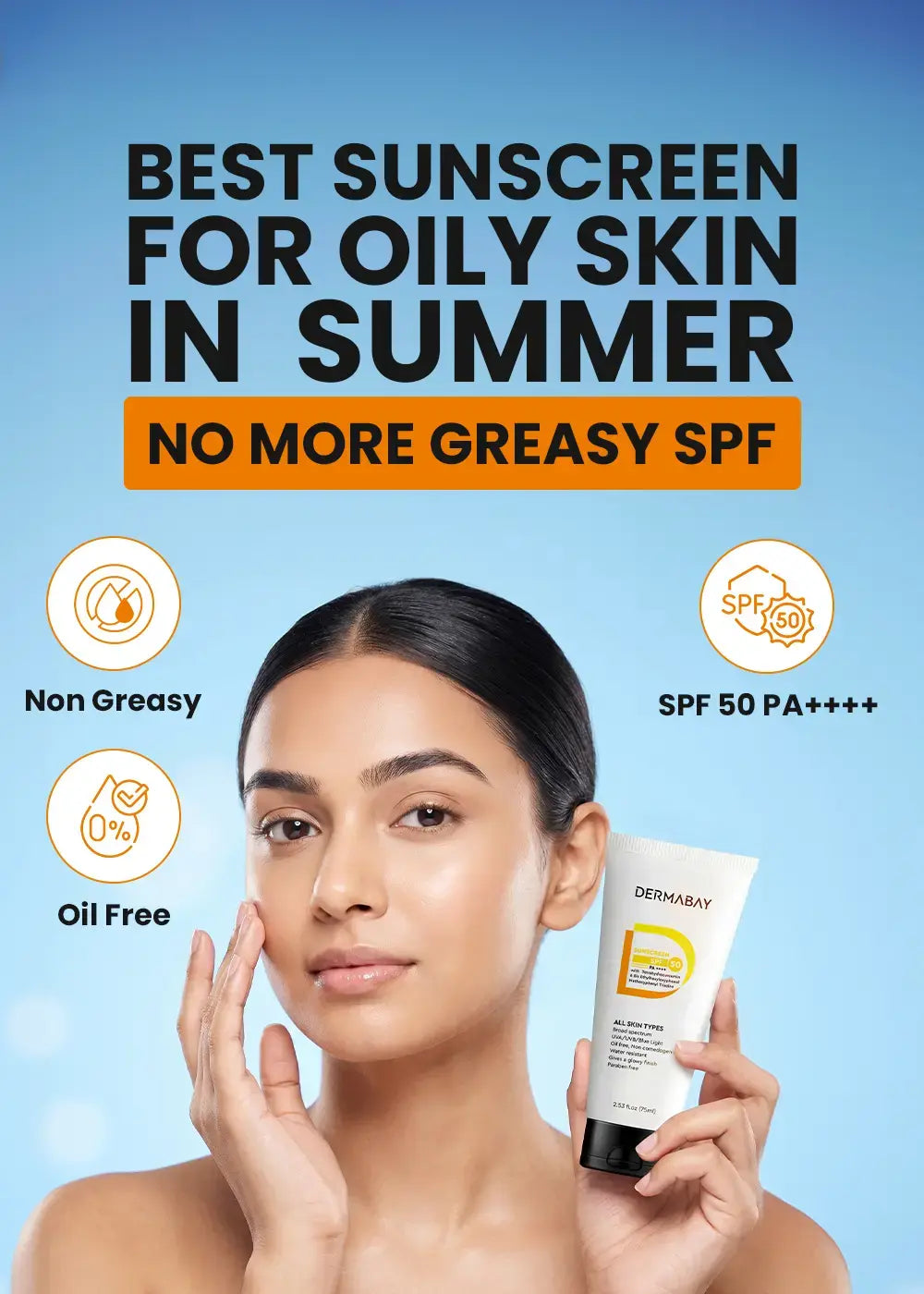 Dermabay‘s sunscreen for oily skin is like a game-changer. It won’t clog pores and won’t leave your face looking shiny with oil and residue. It not only protects but also helps reduce inflammation and hydrates, making it a suitable skincare product for oily skin. So, enjoy the sunshine, and let your skin breathe easy this summer with Dermabay Sunscreen SPF 50